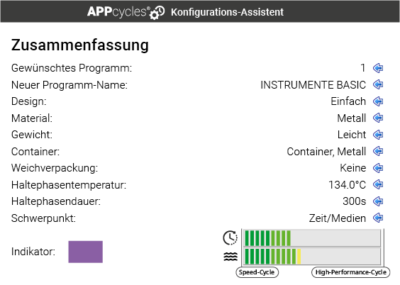 APPcycles® ist eine Konfigurationssoftware, mit der sich Ihre Sterilisationsprozesse präzise an die jeweilige Applikation anpassen lassen – ohne Kompromisse bei der Patientensicherheit. Die einzelnen Prozessphasen sind in Anlehnung an die aktuelle DIN EN ISO 17665 aufgebaut, die eine Einteilung der Medizinprodukte in Produktfamilien vorsieht. Da sich Medizinprodukte hinsichtlich Aufbau, Geometrie und Materialbeschaffenheit unterscheiden, wird dies bei der Konfiguration von APPcycles® ebenso berücksichtigt, wie die gewählte Verpackungsart – ob Container- oder Weichverpackung.